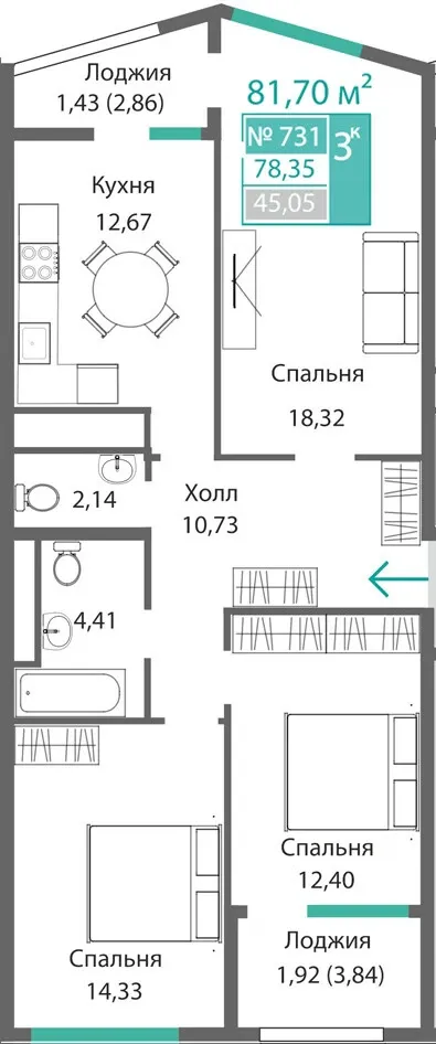 2 лоджии |