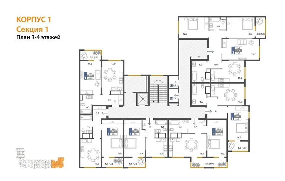 - 4 дома переменной этажности (4-5 этажей) — камерность и приватность