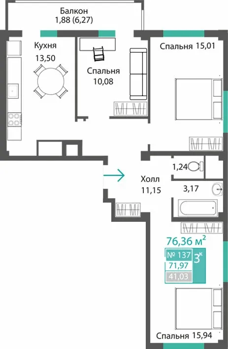 Площадь кухни, м²