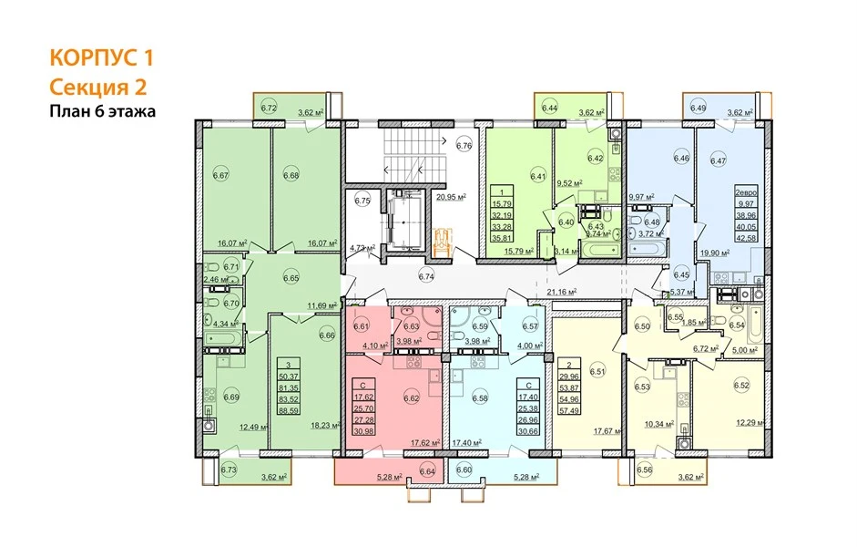 - Двухкомнатные квартиры — простор для малой семьи.