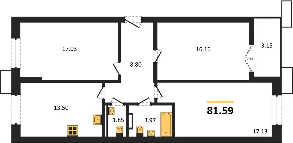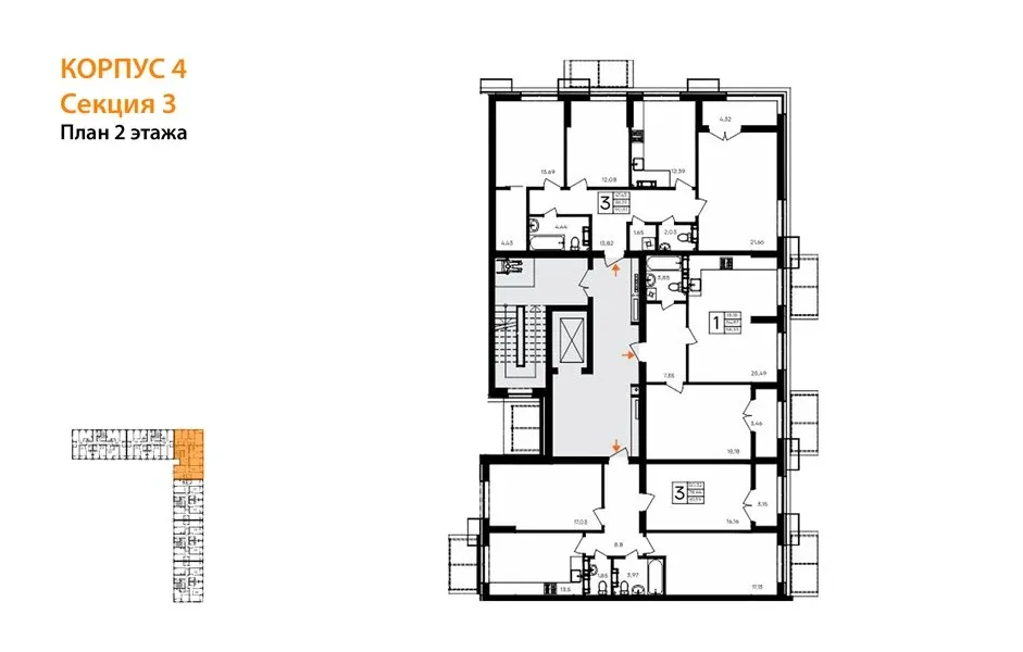 - 3- комнатные – от 78 до 140 м²