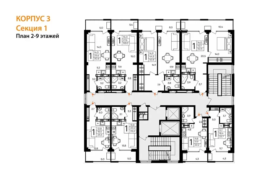 В комплексе представлены апартаменты площадью от 22 до 52 квадратных метров с балконами. Увеличенная высота потолков создаёт ощущение простора и свободы: