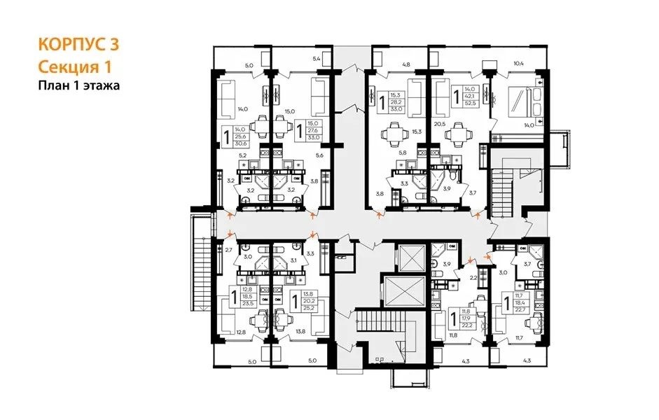 В комплексе представлены апартаменты площадью от 22 до 52 квадратных метров с балконами. Увеличенная высота потолков создаёт ощущение простора и свободы: