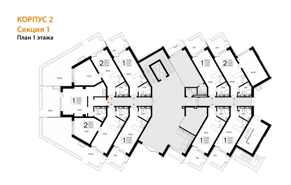 • Однокомнатные — от 30 до 51 м²