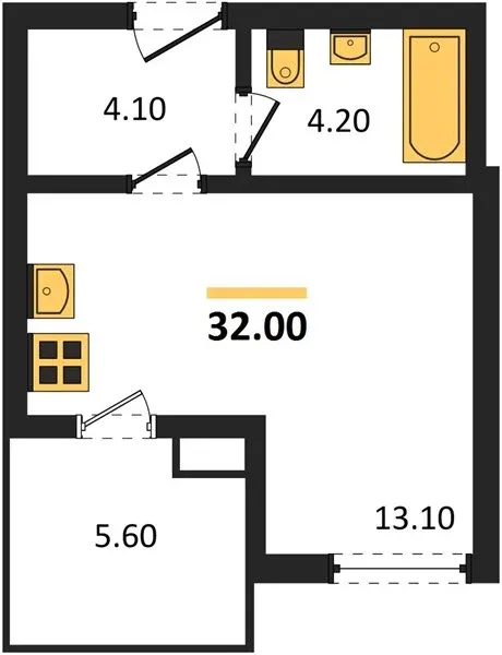 - Студии — 32 м²