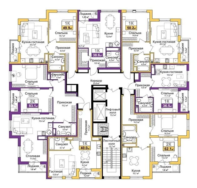 - Концепция «Жизнь в ярких красках»: разноцветные зоны, игровые пространства.