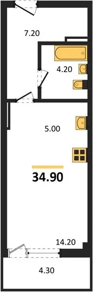 Квартира Студия 34.9 кв. м
