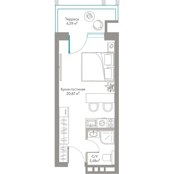 Студия: 28,64 кв.м., 3 этаж в комплексе Курортный комплекс Сансара, 1 очередь, корп.1, сдача: 3кв. , этажей: 12, адрес Саки г., Морская ул., , Застройщик: СЗ Аспекта.