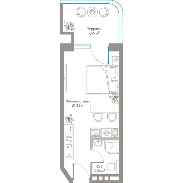 Студия: 32,39 кв.м., 1 этаж в комплексе Курортный комплекс Сансара, 1 очередь, корп.3, сдача: 3кв. , этажей: 12, адрес Саки г., Морская ул., , Застройщик: СЗ Аспекта.