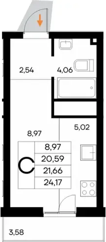 Студия: 24,17 кв.м., 4 этаж в комплексе Новый Судак, 1 очередь, корп.1, сдача: 4кв. , этажей: 9, адрес Судак г., Судак р-н, д. ул. Яблонева, Застройщик: Интерстрой.