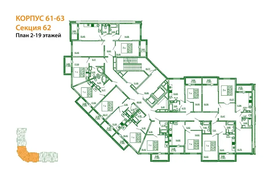 Жилая площадь, м²
