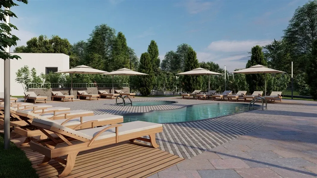 - Два бассейна: летний с детской зоной и крытый подогреваемый для зимнего релакса