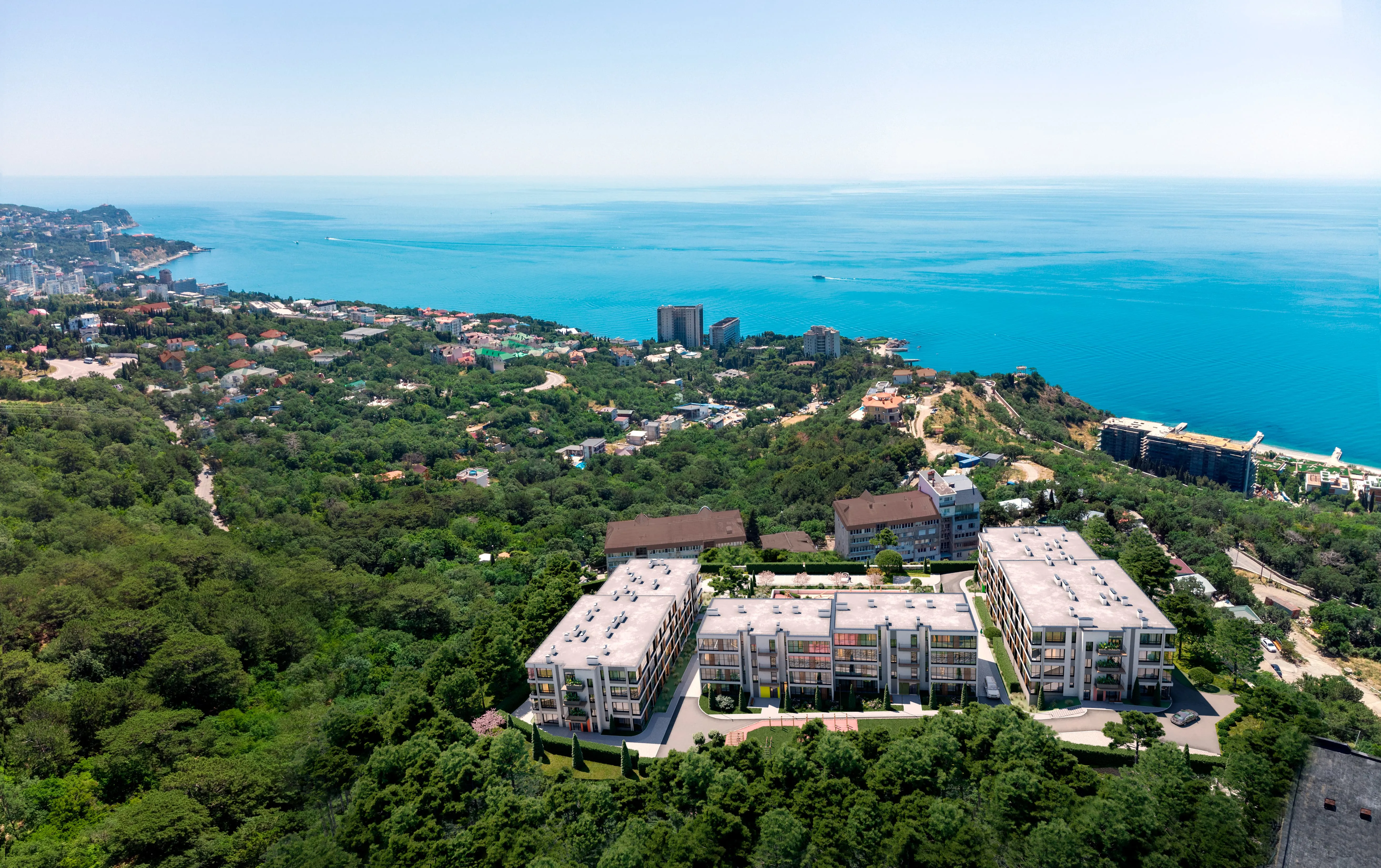 Новый клубный комплекс на территории Большой Ялты с панорамными видами на море и Ай-Петри.