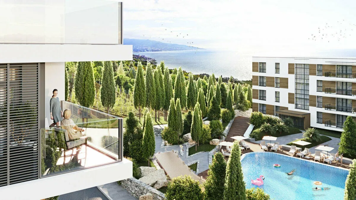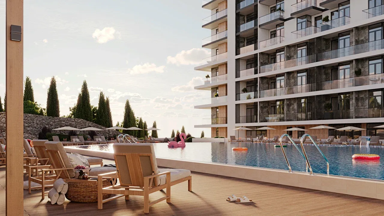 15 этажей, панорамное остекление, дизайнерский ремонт «под ключ». Круглогодичный бассейн, собственный пляж, pet-friendly. Управление — профессиональный отельный оператор.