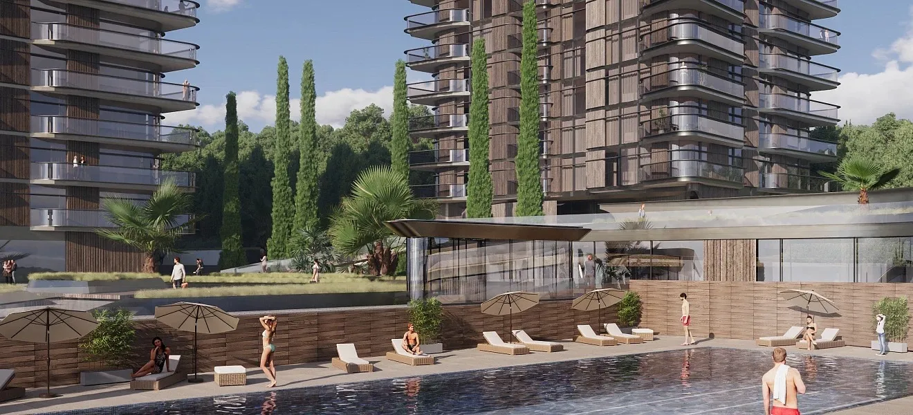 - Спорт как искусство: Отдельный фитнес-центр с бассейном и сауной, всесезонный открытый бассейн с морской водой, теннисный корт, футбольное поле с искусственным газоном, площадки для волейбола, баскетбола и воркаута, велодорожки.