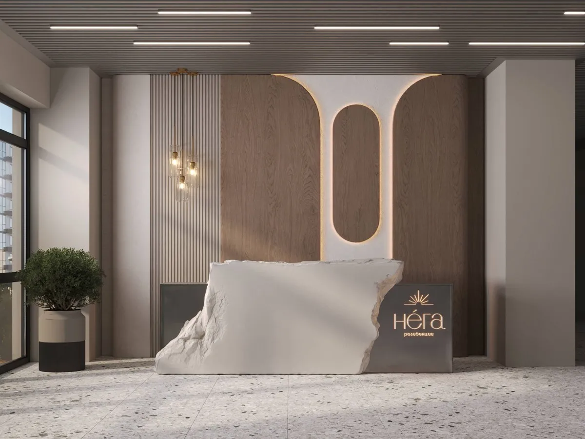 - Натуральные материалы: Камень, дерево в отделке фасадов и лобби.