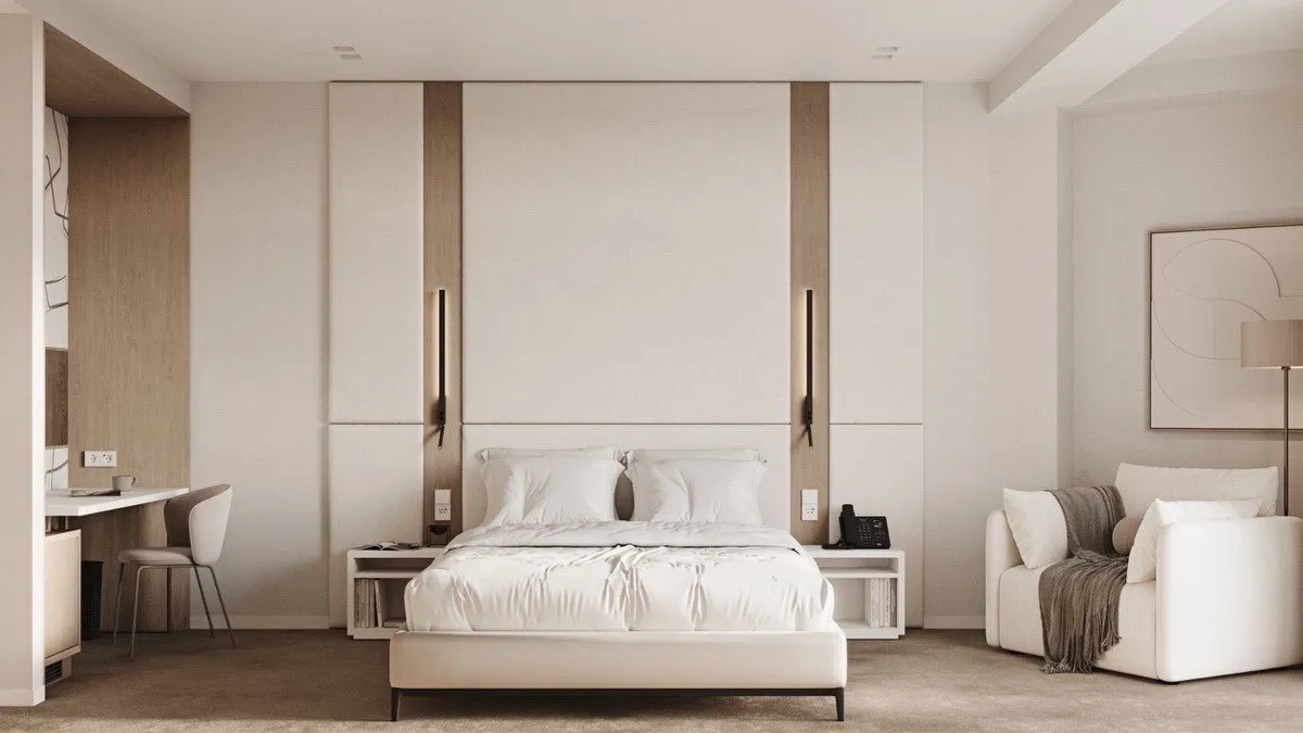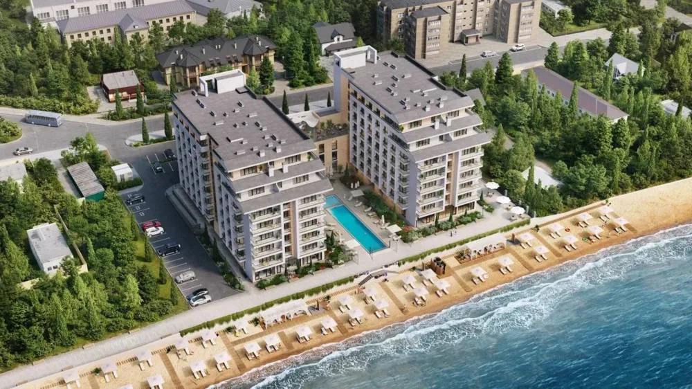 Комплекс из двух современных 8-этажных корпусов предлагает различные планировки — от уютных гостиничных номеров до просторных апартаментов, многие из которых имеют панорамные окна с видом на море.