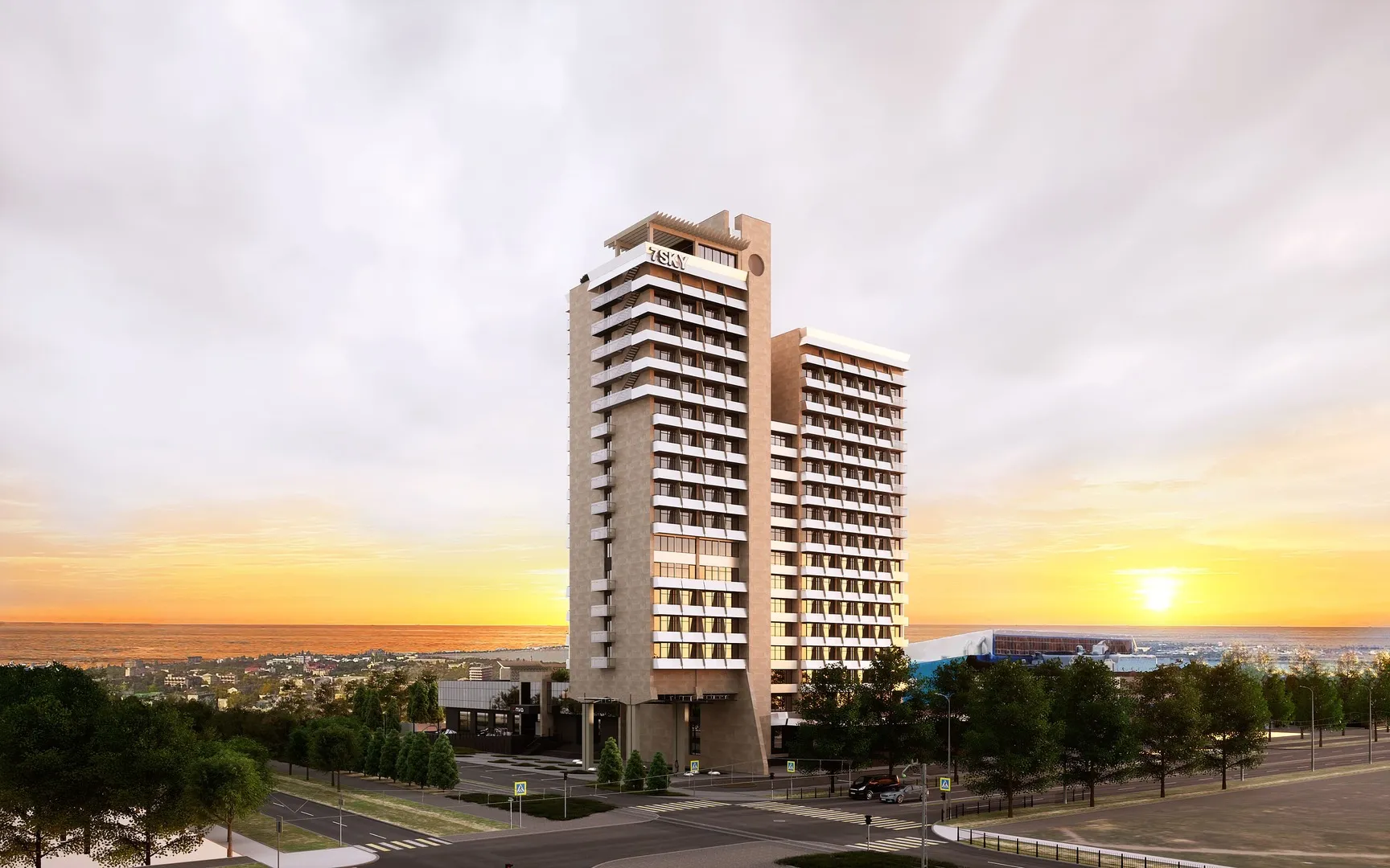 Восемнадцать этажей абсолютного превосходства. SKY SEVEN – это не просто самая высокая башня в центре Евпатории, это новый символ статуса и самый перспективный инвестиционный проект на западном побережье Крыма. Редкая возможность стать совладельцем объекта, не имеющего аналогов: первого и единственного бизнес-отеля, созданного для успешных людей, ценящих безупречный комфорт, технологии и выгодные вложения.