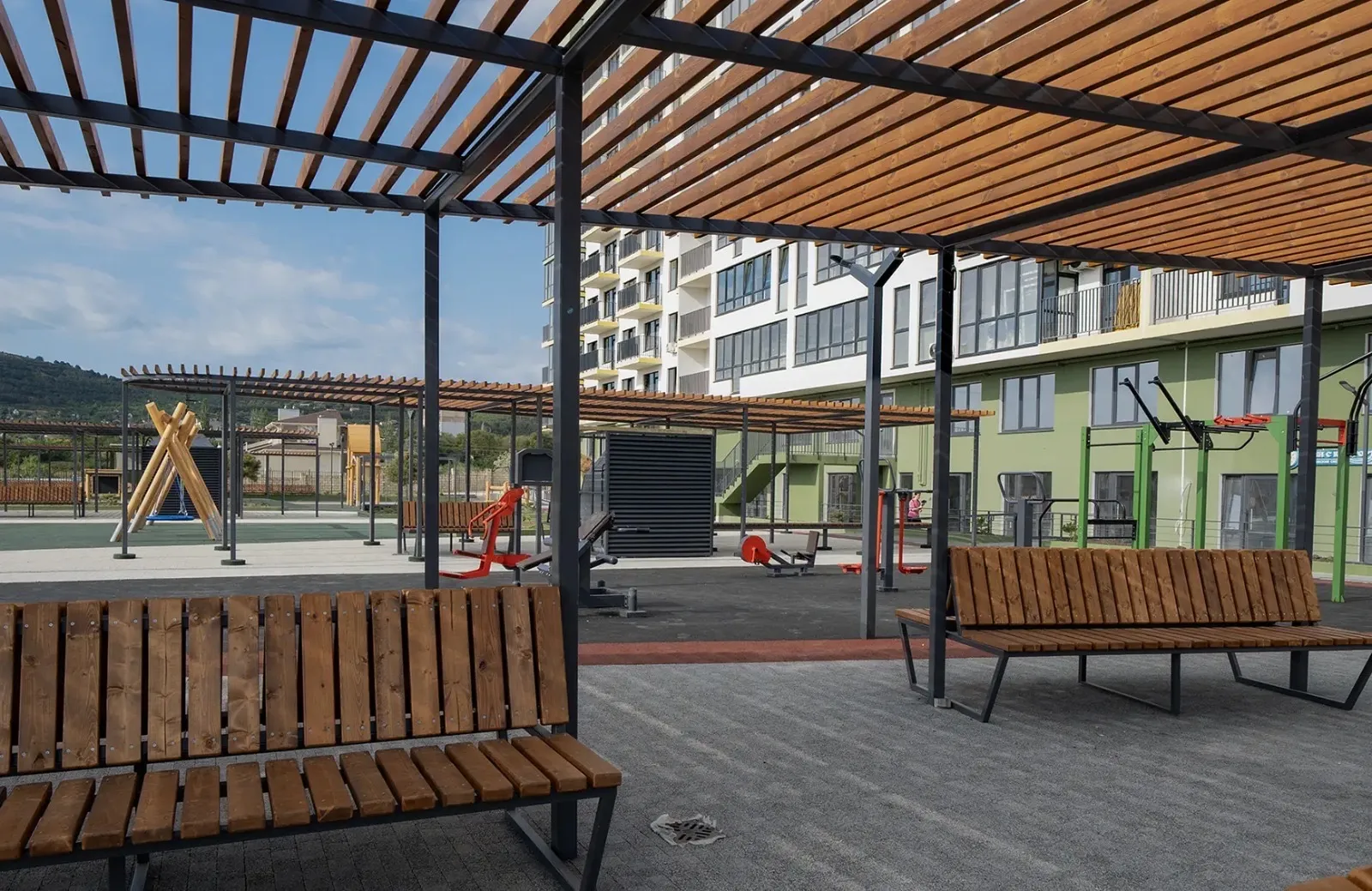 - Детские и спортивные площадки, зоны воркаута, общественная терраса.