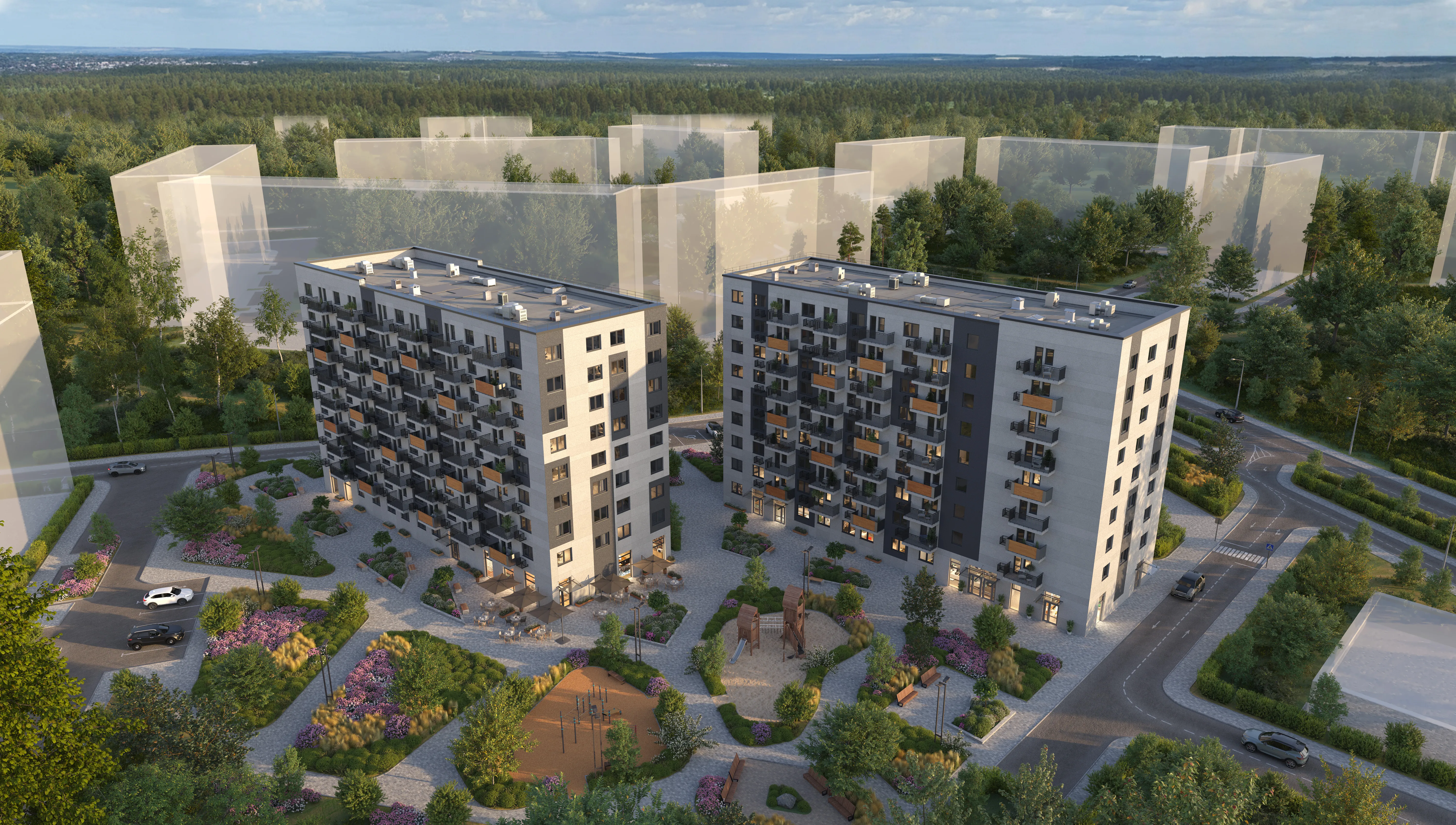 - Современные детские и спортивные площадки — для активного досуга жителей всех возрастов.