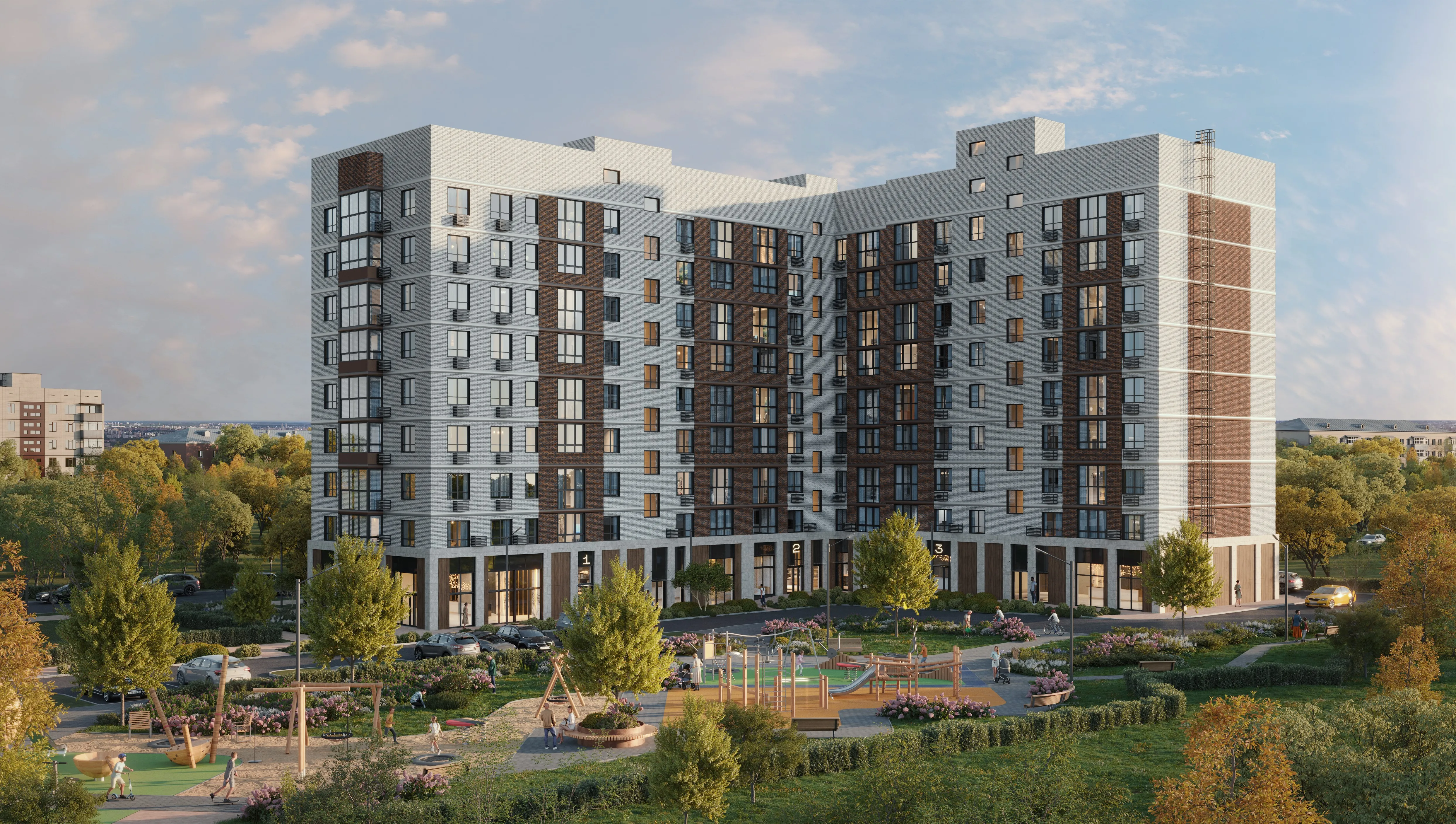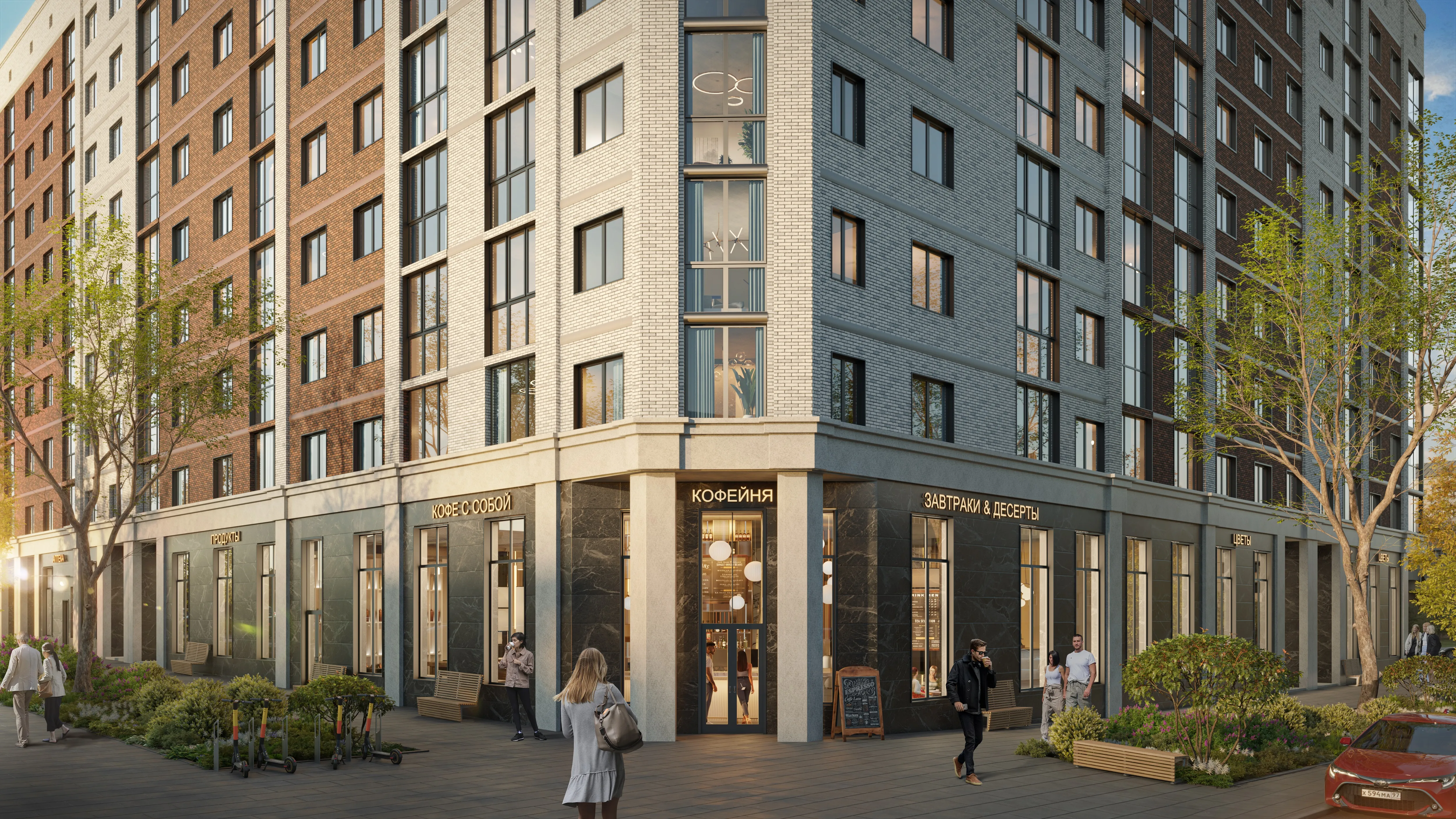 А для максимального комфорта жителей кофейни, аптеки и магазины расположатся прямо на первых этажах дома. Это значит, что за утренним кофе или необходимыми покупками не нужно будет далеко ходить.