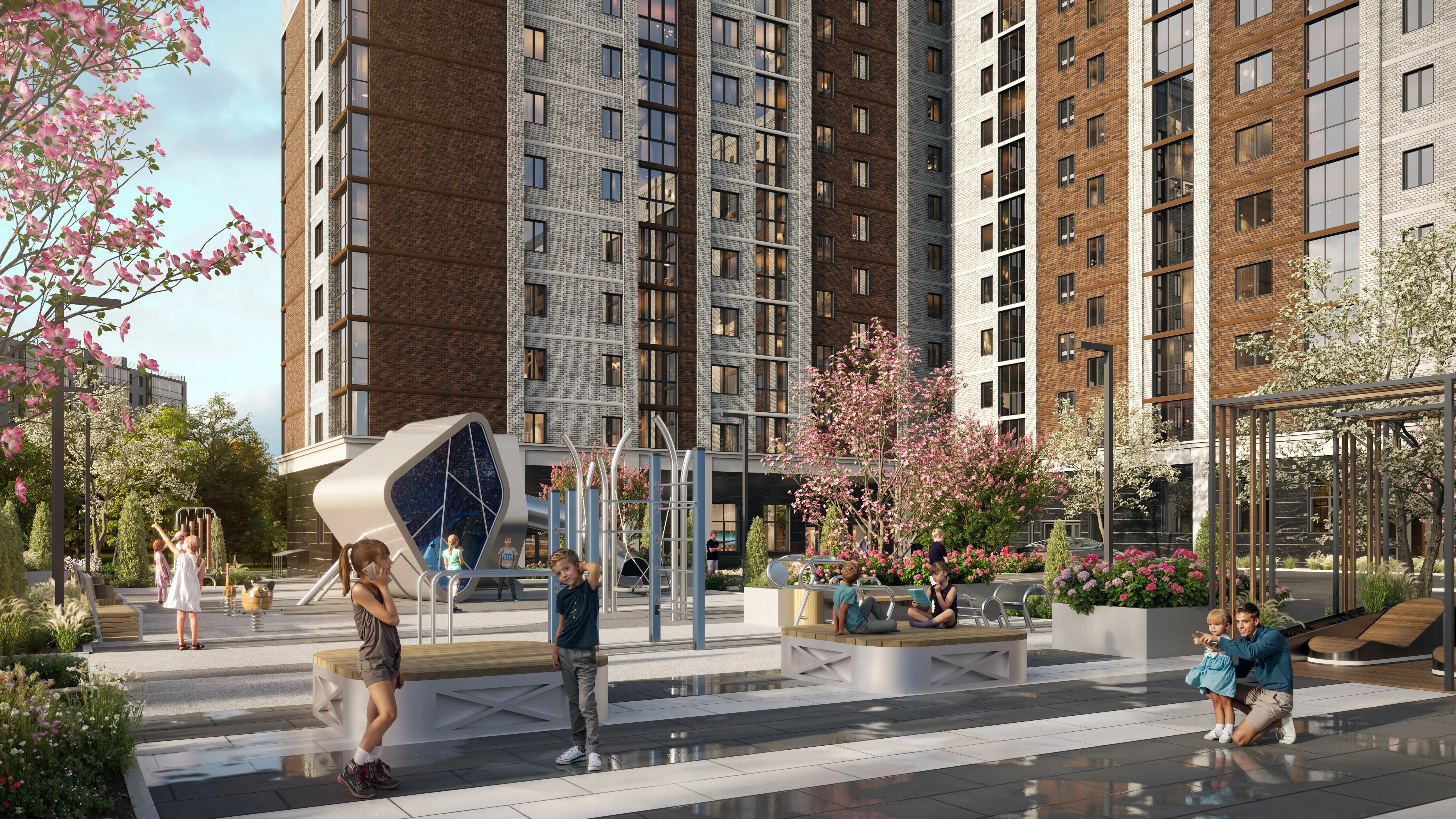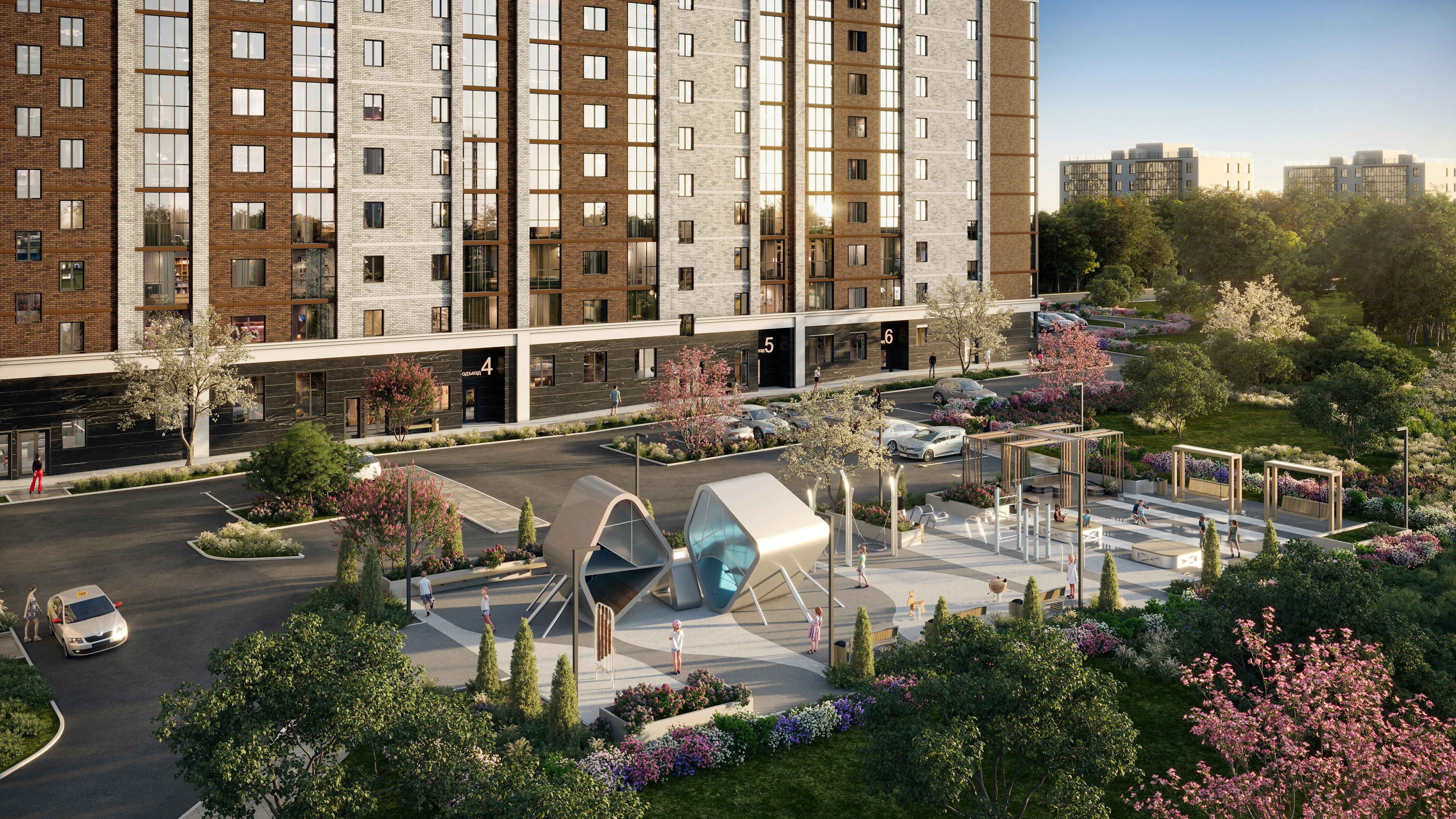 Придомовая территория «Резиденции» спроектирована так, чтобы каждый житель нашёл место по душе. Зонирование пространства позволит выбрать комфортный вид отдыха: