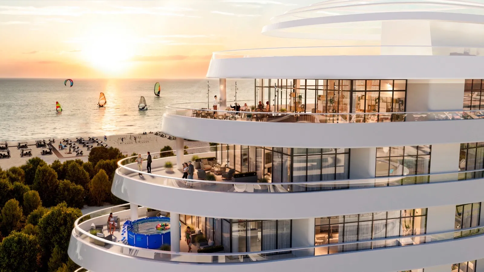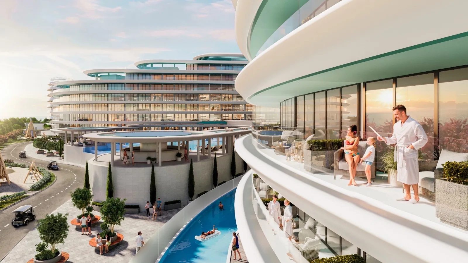 Комплекс предлагает 1170 современных апартаментов с отделкой и меблировкой:
