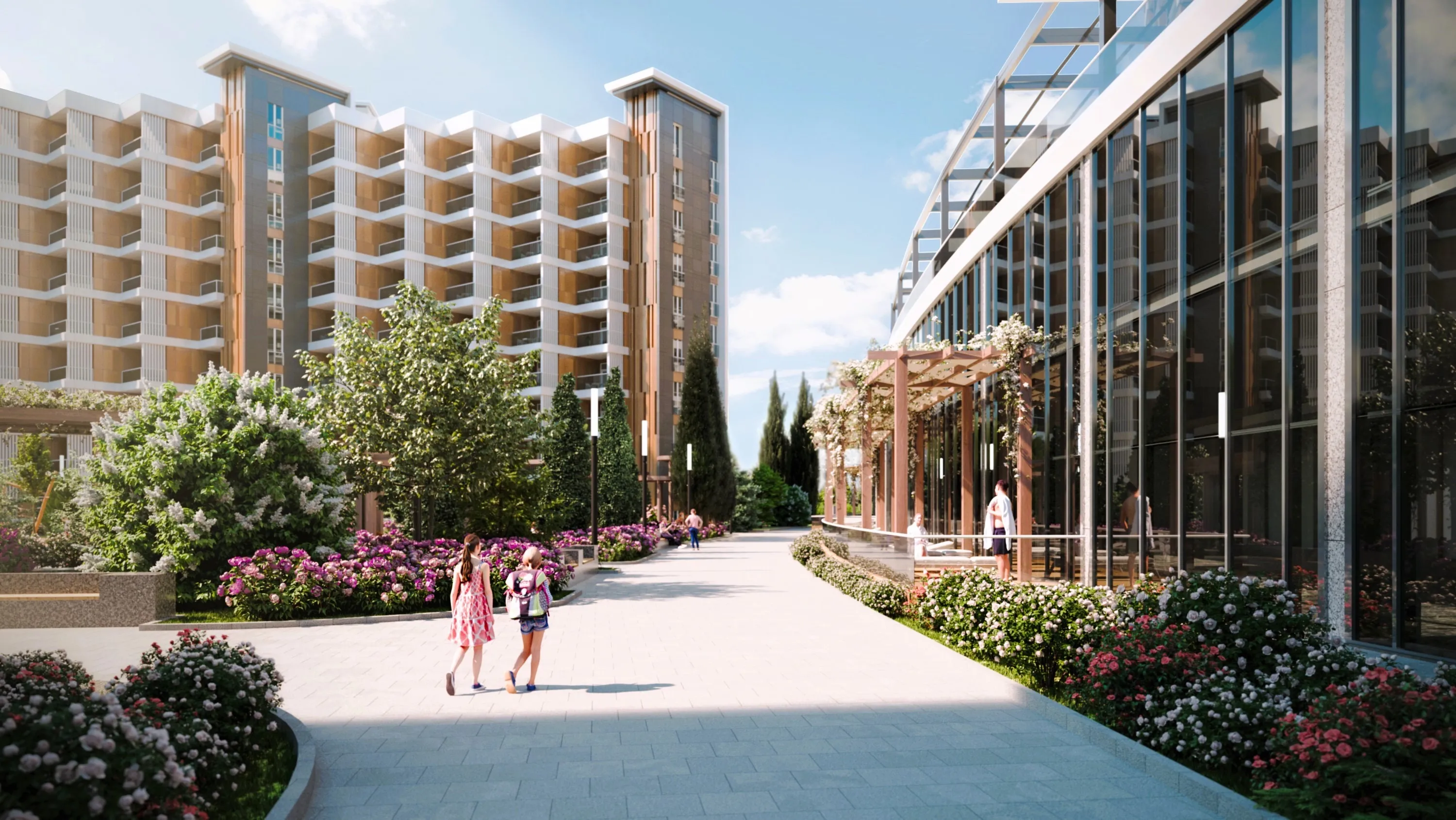Четыре элегантных корпуса (9-12 этажей) с панорамным остеклением спроектированы так, чтобы 1213 апартаментов стали видовыми. Вентилируемые фасады, общая система кондиционирования и энергосберегающие технологии (солнечные панели, рекуперация) обеспечивают комфорт и экологичность в любое время года.