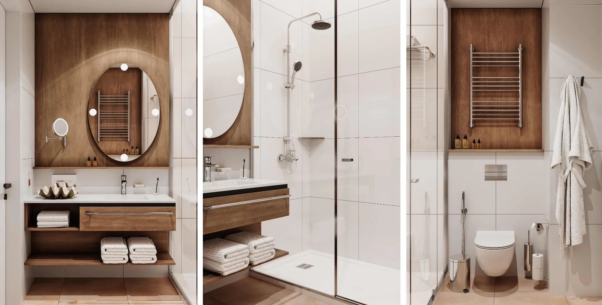 - Санузлы премиум-класса — керамогранит, встроенные душевые.