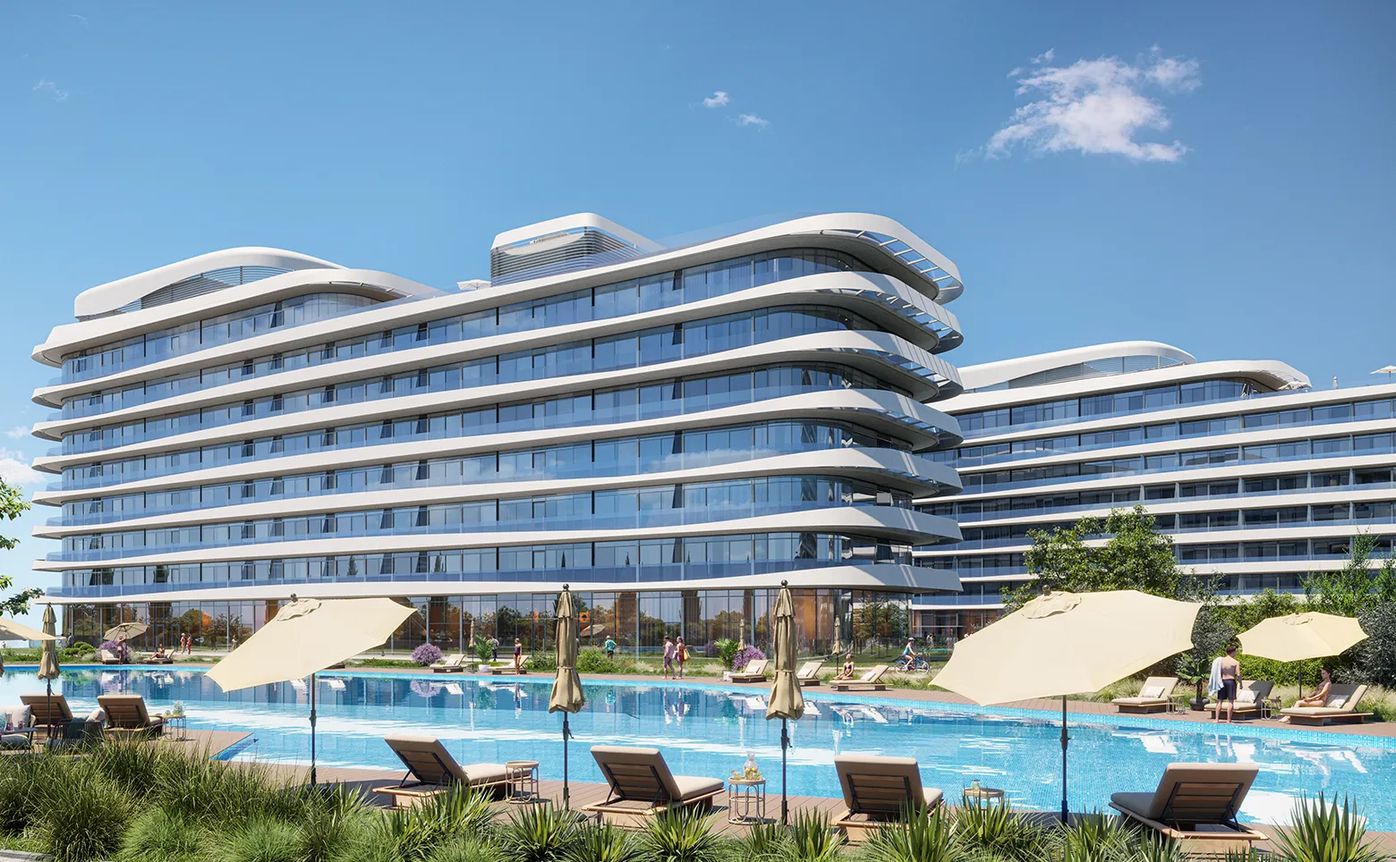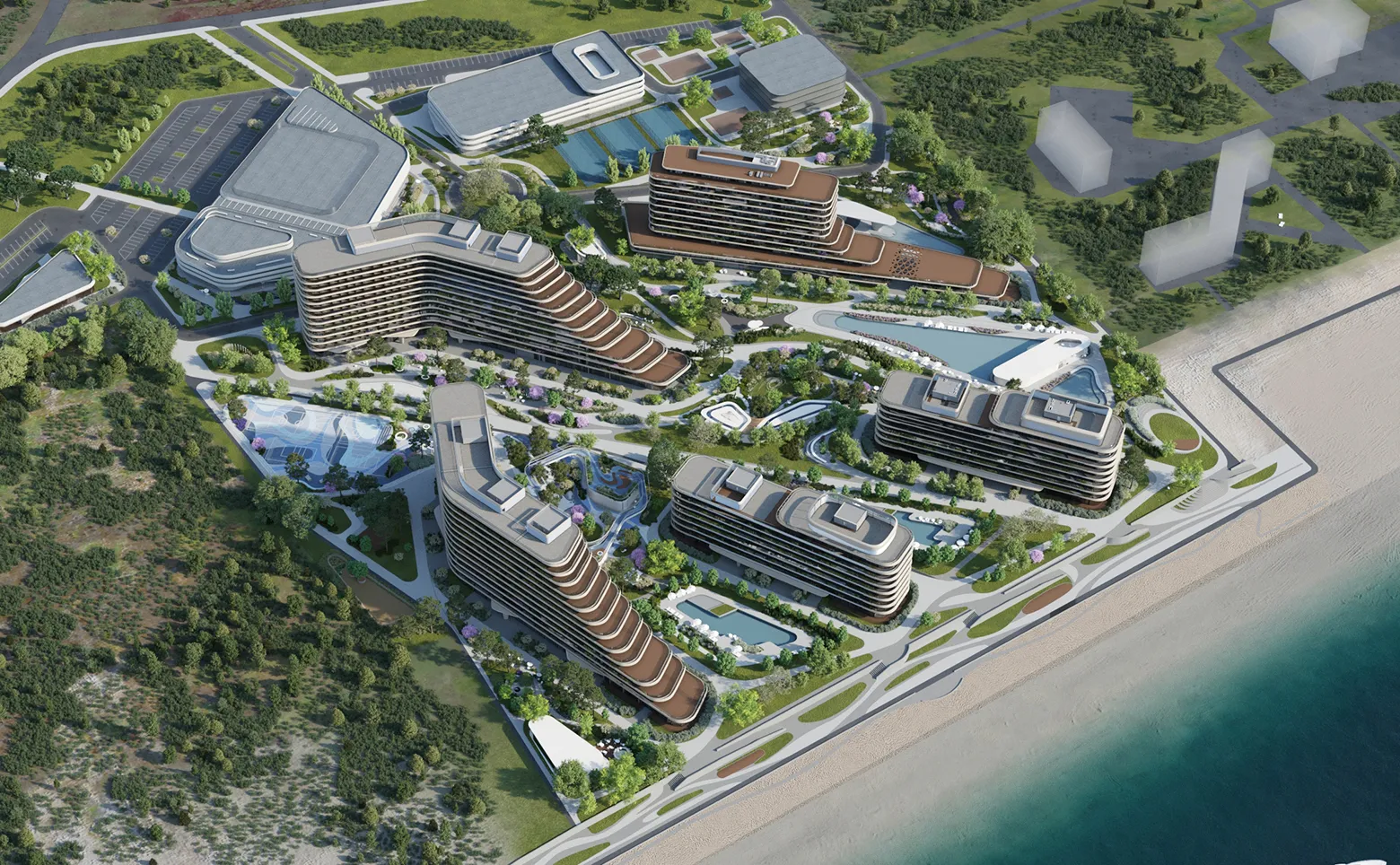 4 корпуса, архитектура в стиле круизных лайнеров, 14 Га закрытой территории, собственный пляж, СПА, грязелечебница. Управление VALO HOSPITALITY. Прогнозируемая доходность — до 9–11% годовых.