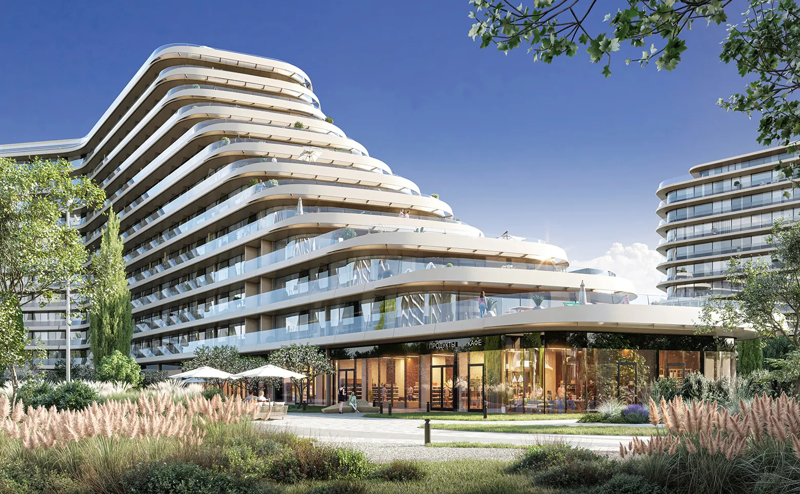 14 гектар закрытой территории, собственный пляж, набережная, ландшафтный парк DerevoPark, теннисные корты, бассейны, СПА, медицинский центр с грязелечебницей. Это не просто апартаменты, а самодостаточный курортный кластер, который привлекает платёжеспособную аудиторию круглый год. - ПЕРВАЯ ЛИНИЯ