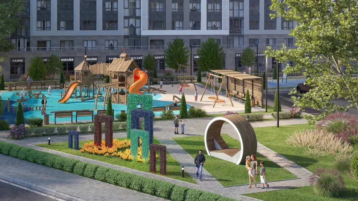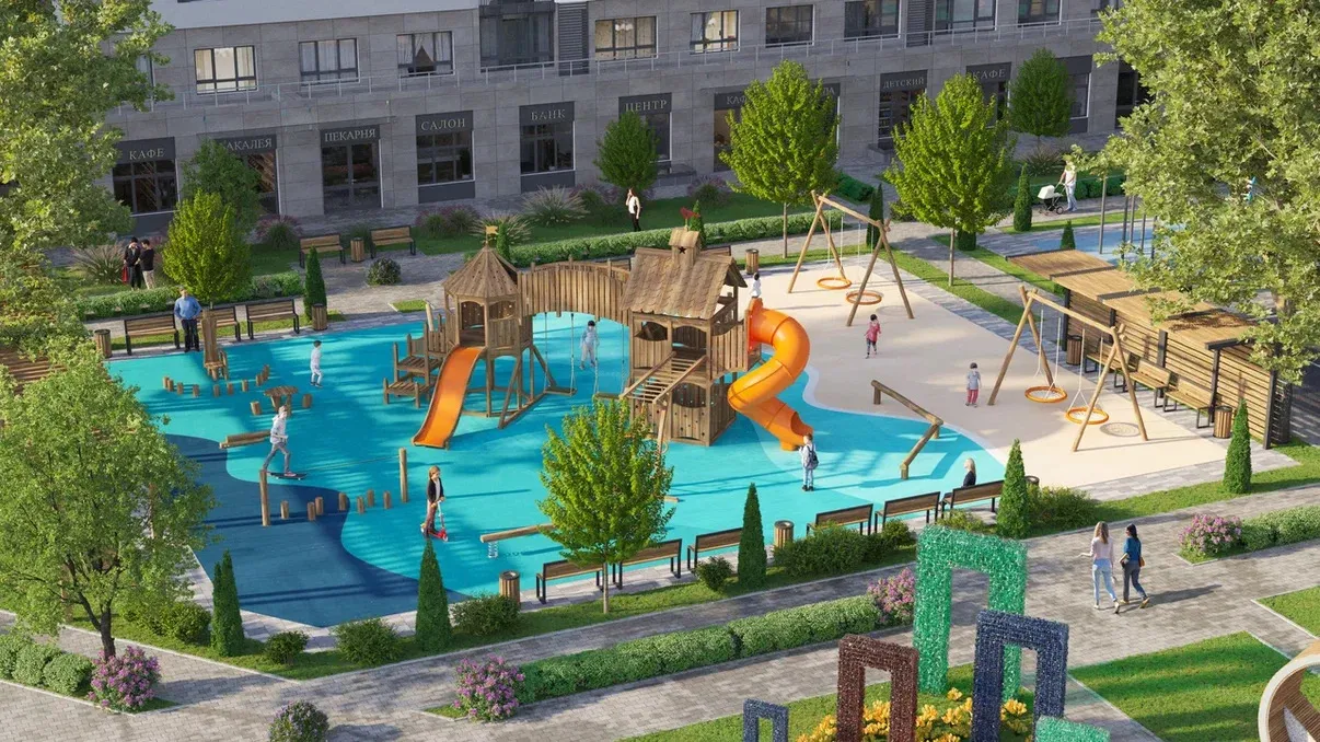 - Детям: Современные игровые площадки с безопасным резиновым покрытием и инвентарем для всех возрастов.