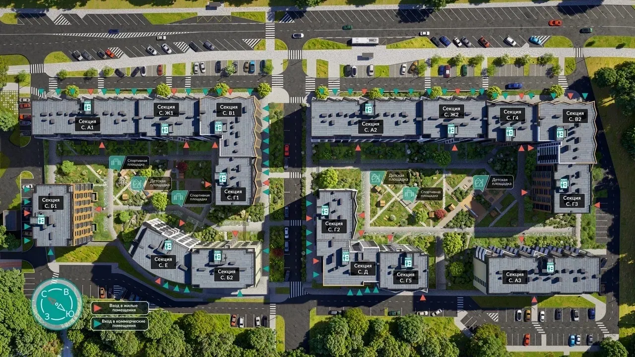 - Закрытые дворы с контролем доступа — безопасность для детей и спокойствие для родителей.