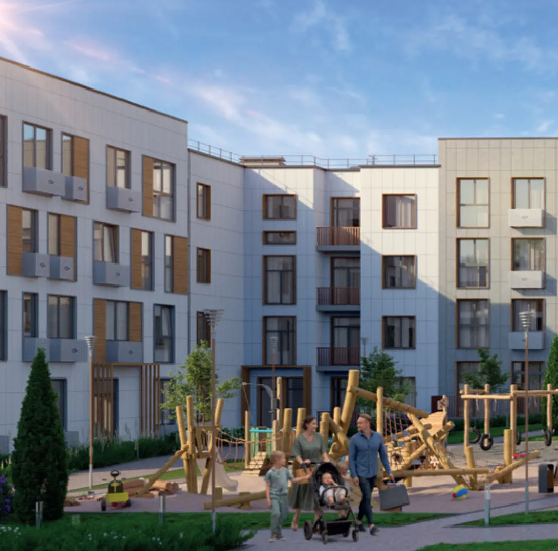 - Четырехэтажные дома с дворами без машин — безопасность и комфорт.