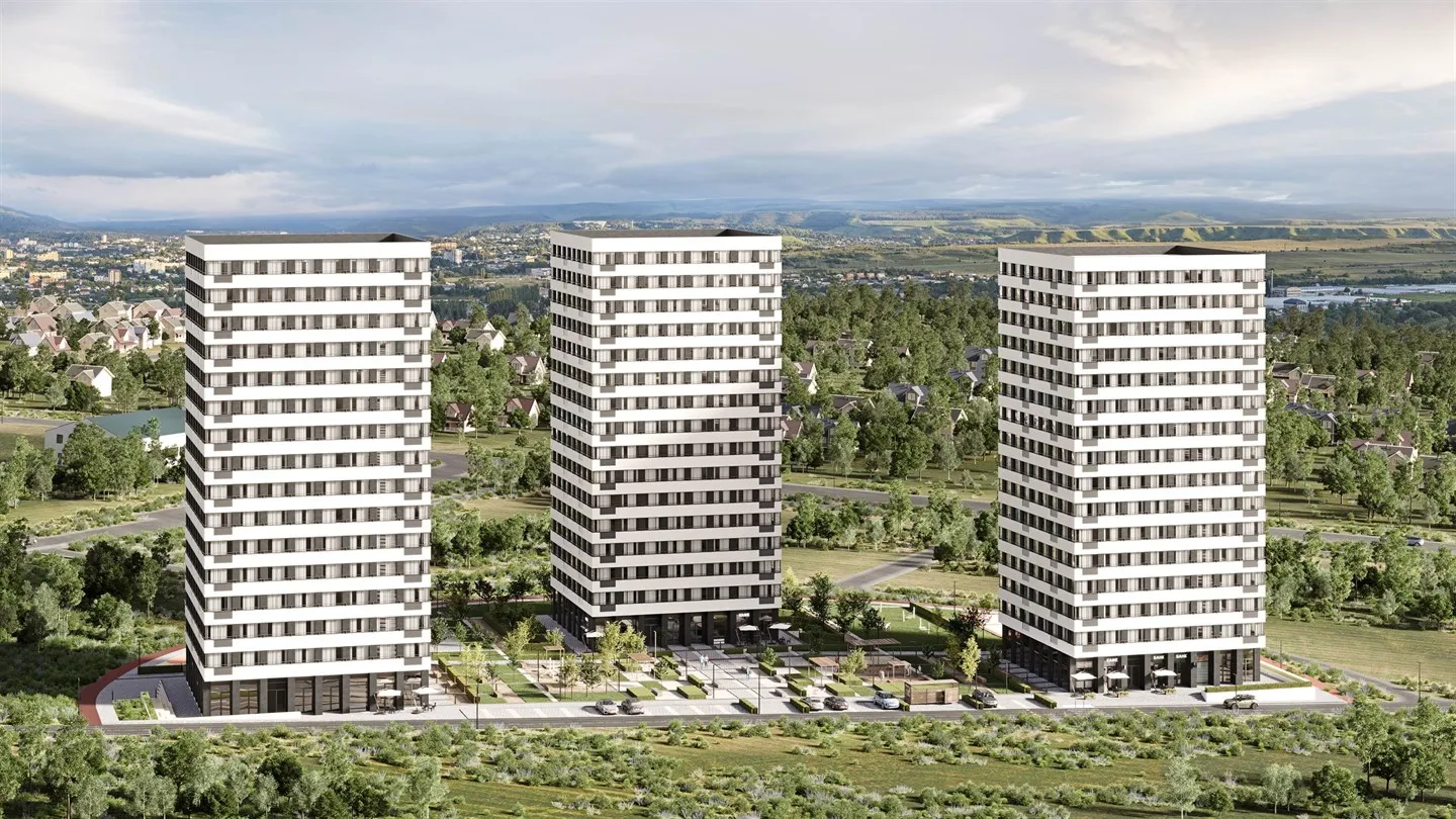 Три элегантные башни, устремленные в небо, создают новый силуэт развивающегося района. Монохромная эстетика, продуманное озеленение и концепция жизни без машин — здесь каждый элемент подчинен идее комфортного пространства для тех, кто ценит и динамику города, и тишину двора. Если вы ищете, где купить квартиру в Симферополе в новостройке с современной архитектурой и продуманной средой — этот проект для вас. Это один из самых элегантных ЖК Симферополь, где каждая деталь создает гармонию.