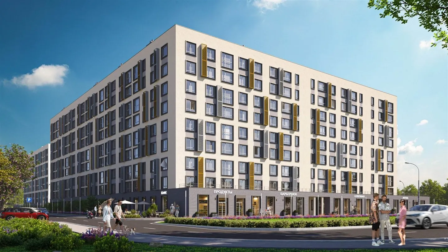 Четыре девятиэтажных дома с элегантной колоннадой и закрытыми дворами. Квартиры с патио на первых этажах, индивидуальное газовое отопление, отделка White Box. 9 минут до аэропорта, 12 минут до вокзала.