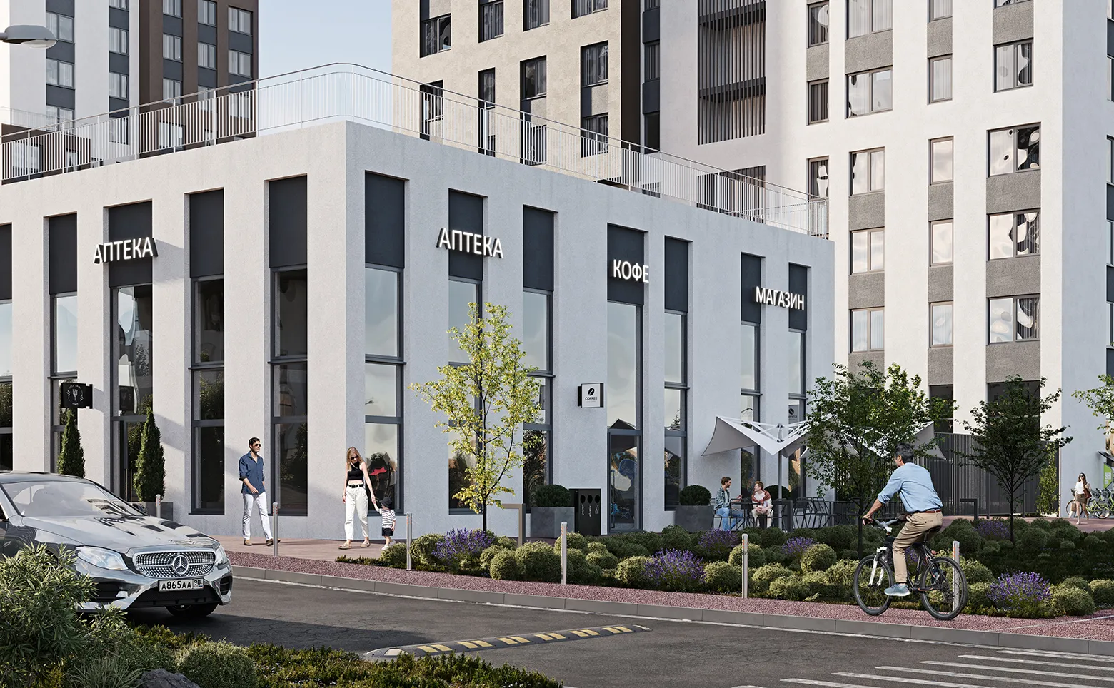 - Магазины, спортзал, торговый центр, пункты выдачи.