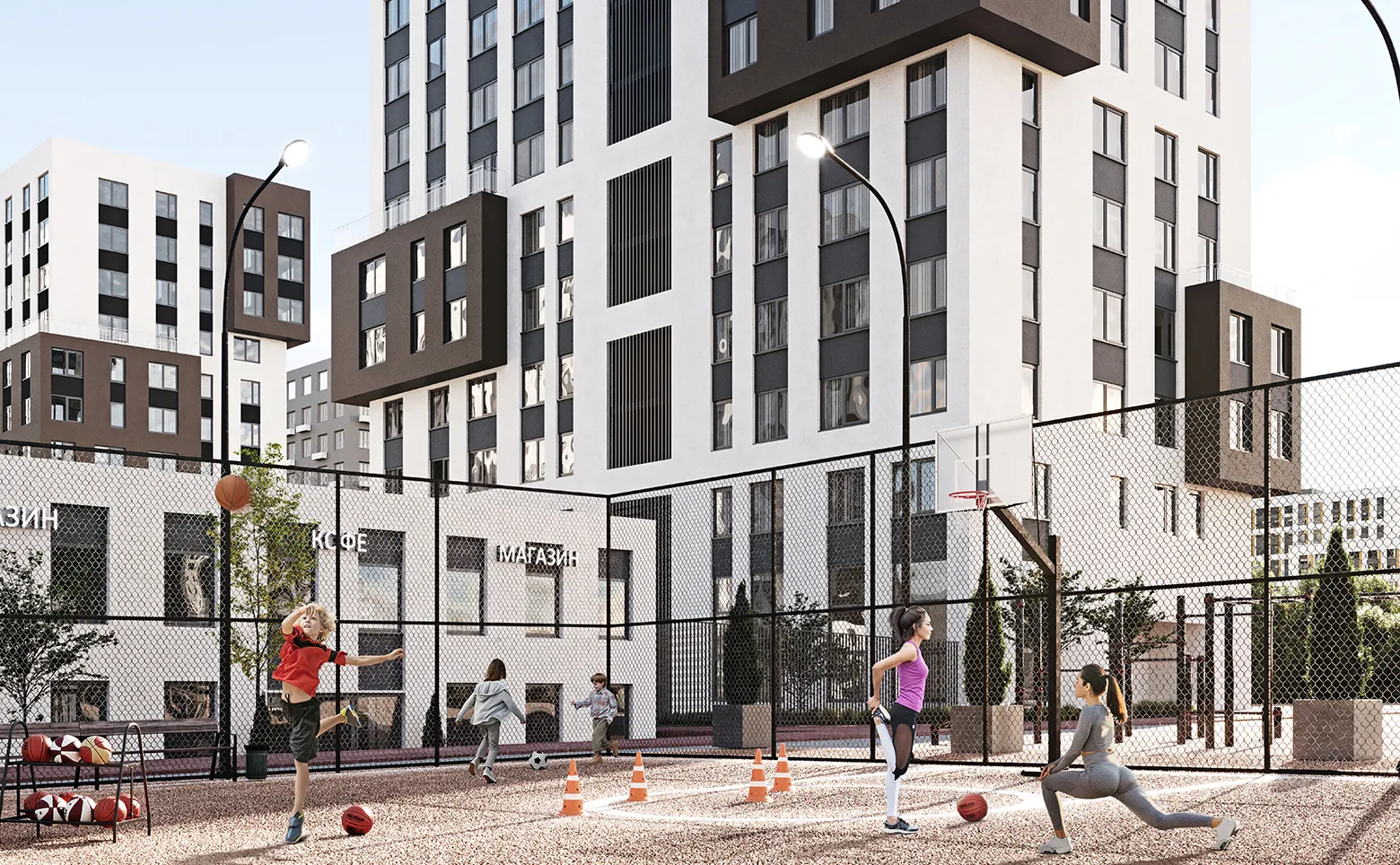 - Спортивные люди — теннис, воркаут, тренажёры прямо во дворе.