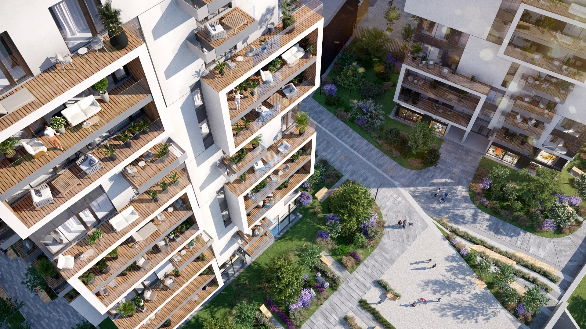 - Панорамные виды: Живописные виды на исторический центр города или умиротворяющий парк из каждой квартиры. На верхних этажах расположены двухуровневые пентхаусы с видовыми террасами.