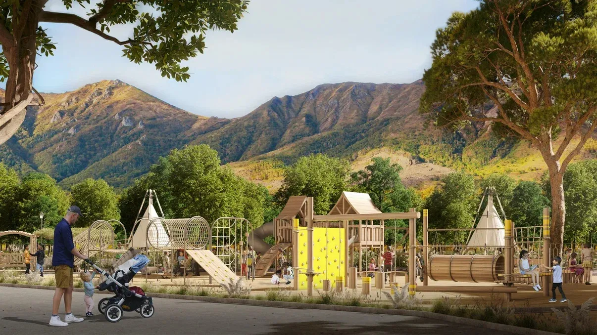 - Активный досуг: Спортивные и воркаут-зоны, велодорожки, аллеи для прогулок и амфитеатр для мероприятий.