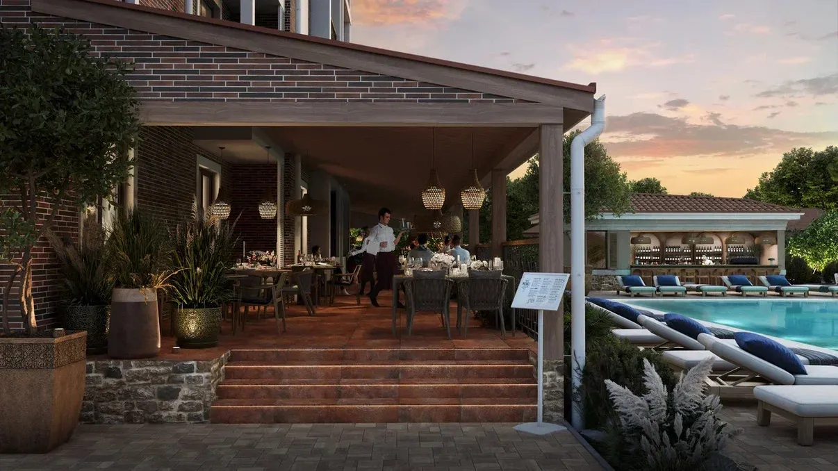 - Центр отдыха: Просторная зона у бассейна с шезлонгами и стильными бунгало, ресторан с летней террасой, уютная кофейня, винный бутик и гриль-домики.